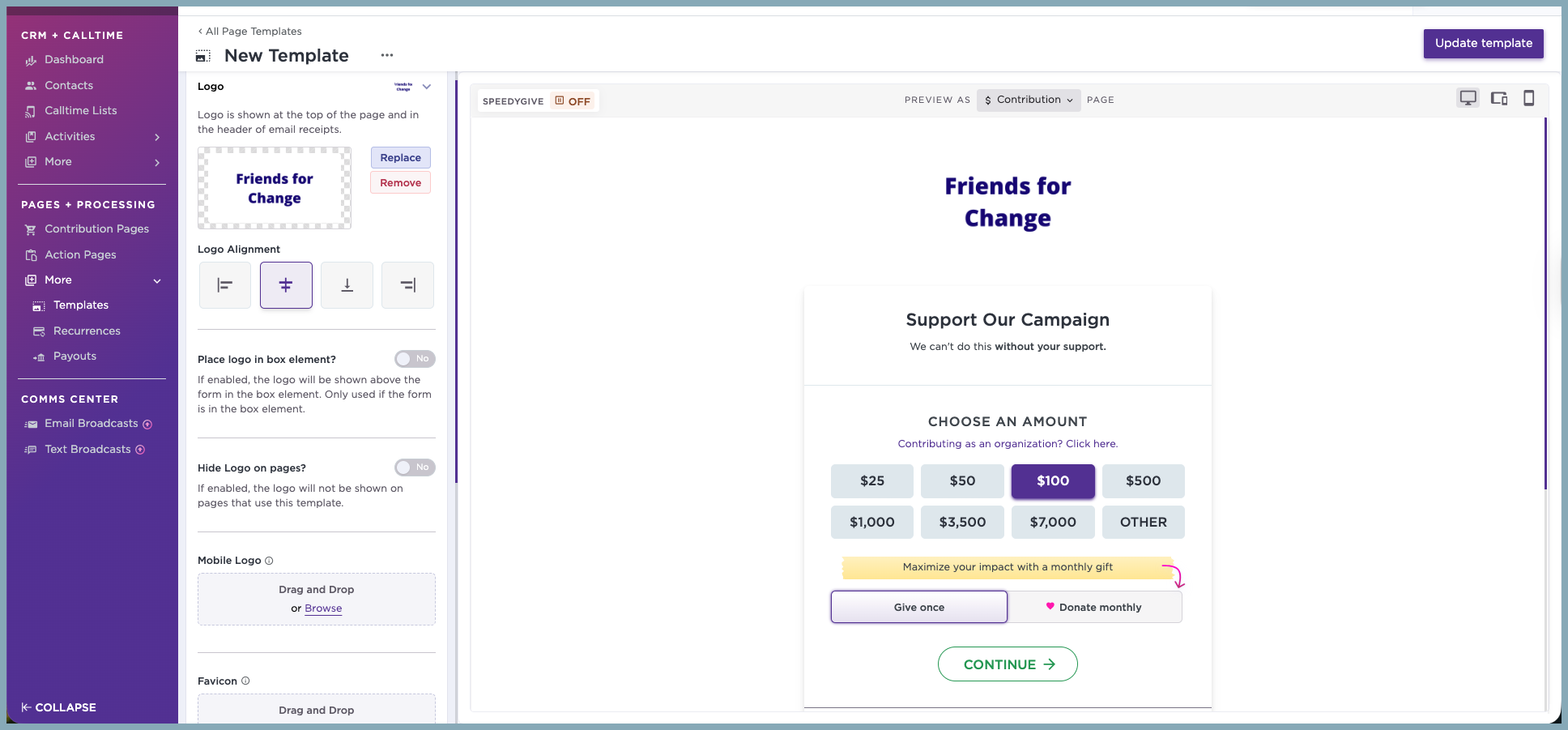 - Select Save Template to create the template. Upon creation you'll be able to edit the page layout, form placement, typography, buttons, etc.
